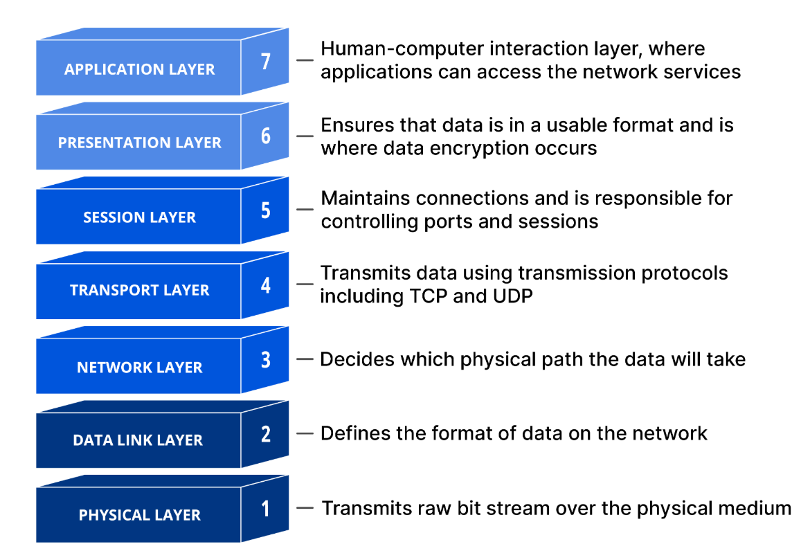 OSI 모형(Open Systems Interconnection Reference Model)을 가장 먼저 다루는 글이어서 짚고가면 좋을 것 같은데요, 이는 네트워크 통신 기능을 7개의 계층으로 나누는 개념적 프레임워크입니다.