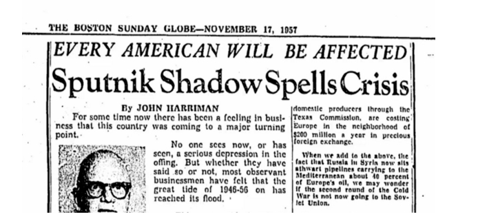 1957년, 소련이 세계 최초의 인공위성 스푸트니크 1호 발사에 성공하면서 미국은 큰 충격에 빠졌습니다.