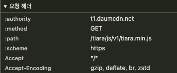 웹 서버로 리소스를 요청할 때 Request Header의 accept-encoding을 볼 수 있습니다.